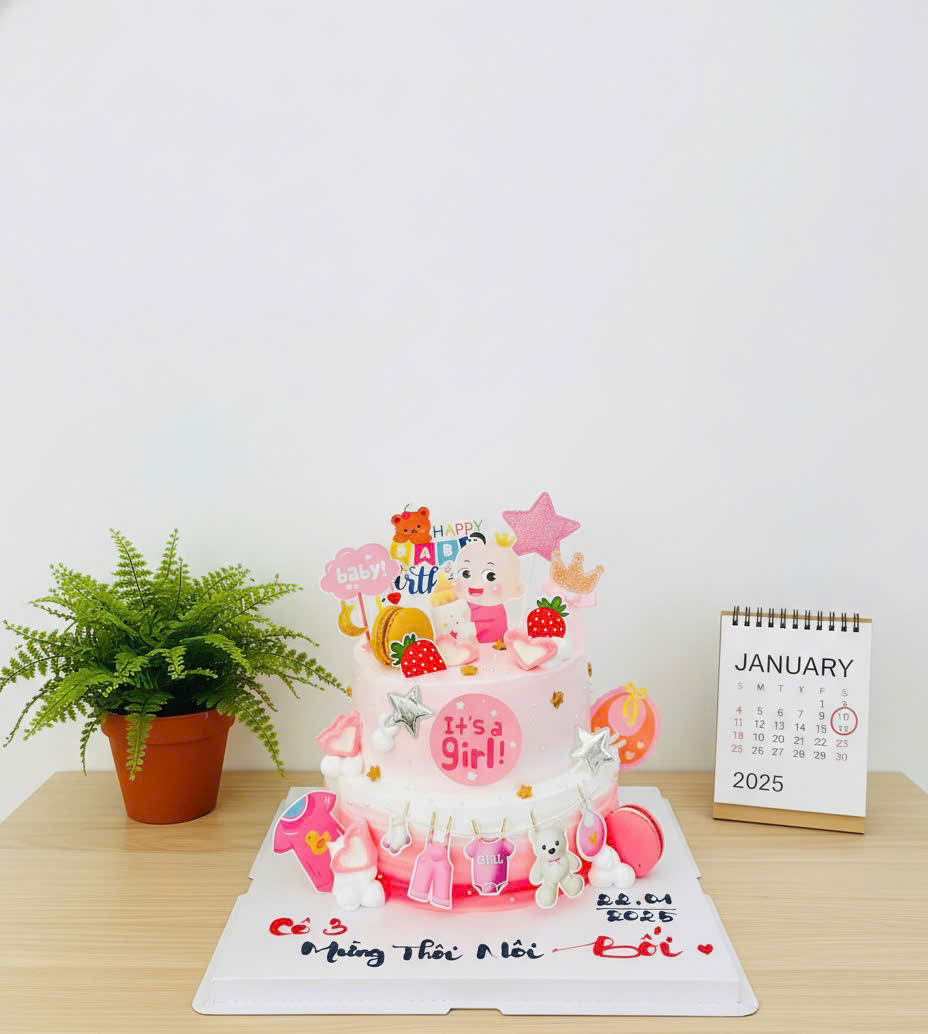 Đây là mẫu bánh xinh lung linh mừng thôi nôi cho bé gái, được thiết kế riêng để tạo nên khoảnh khắc ngọt ngào và đáng nhớ trong ngày đầu tiên tròn tuổi.