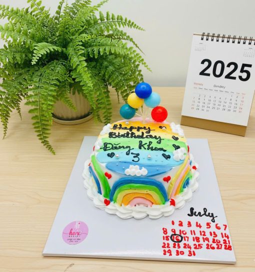 Bánh kem sữa tươi trang trí hình cầu vòng được thiết kế tỉ mỉ, cẩn thận và tinh tế.