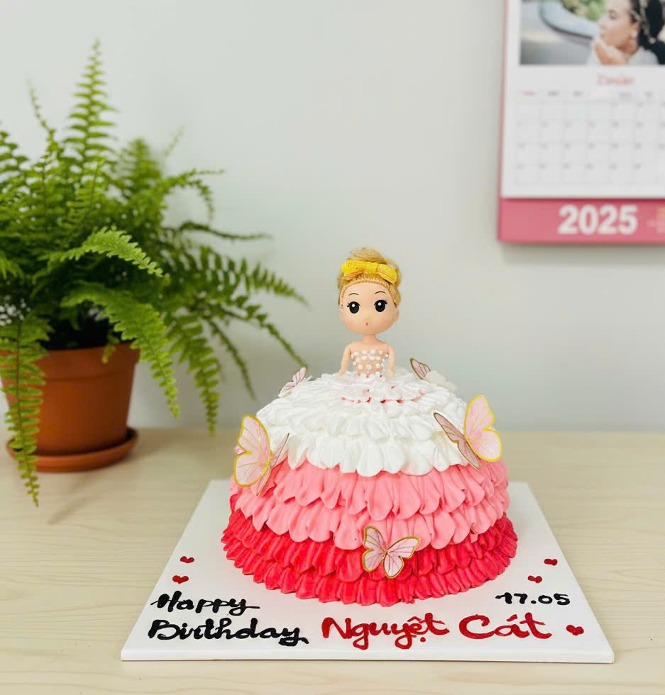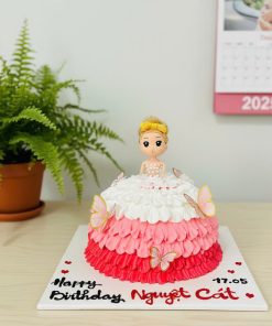 Bánh kem sữa tươi trang trí hình công chúa búp bê được thiết kế tỉ mỉ và tinh tế.
