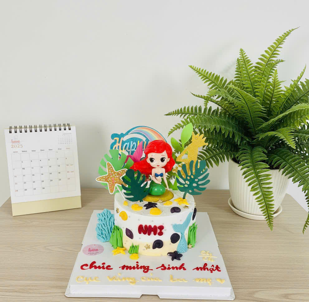 Bánh kem sữa tươi trang trí hình nàng tiên cá được thiết kế tỉ mỉ và tinh tế.