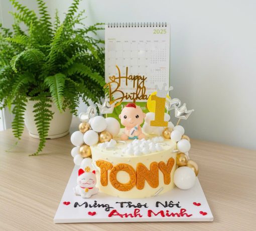 Bánh kem thôi nôi bé trai tuổi mèo