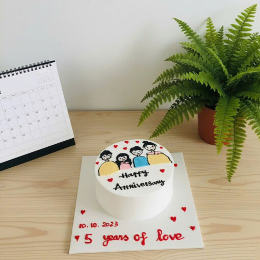 Bánh kem vẽ hình gia đình kỷ niệm đám cưới.